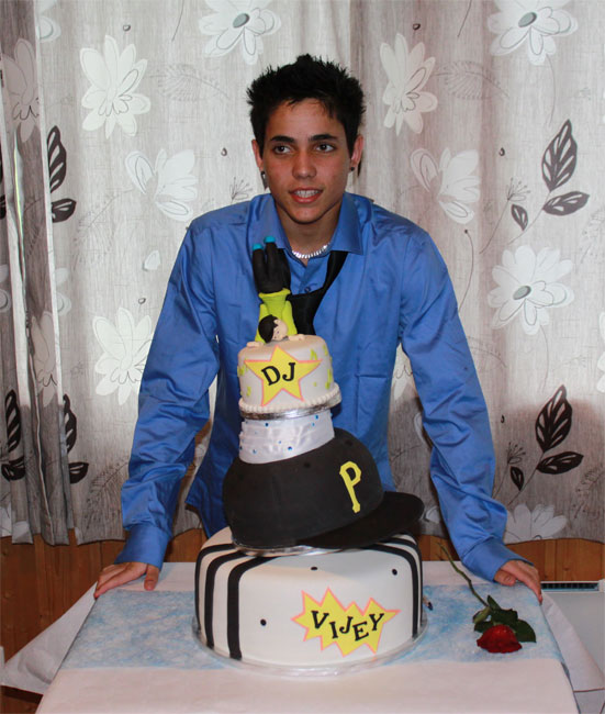 Kaken hans var laget etter hans egen stil og interesser. Han elsker å danse, og gutten på toppen viser hans trinn med å stå på hendene. Capsen i midten er laget ut fra hans favoritt caps blandt mange.